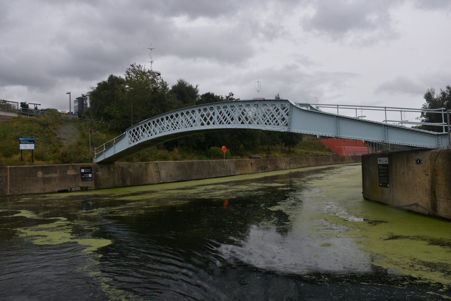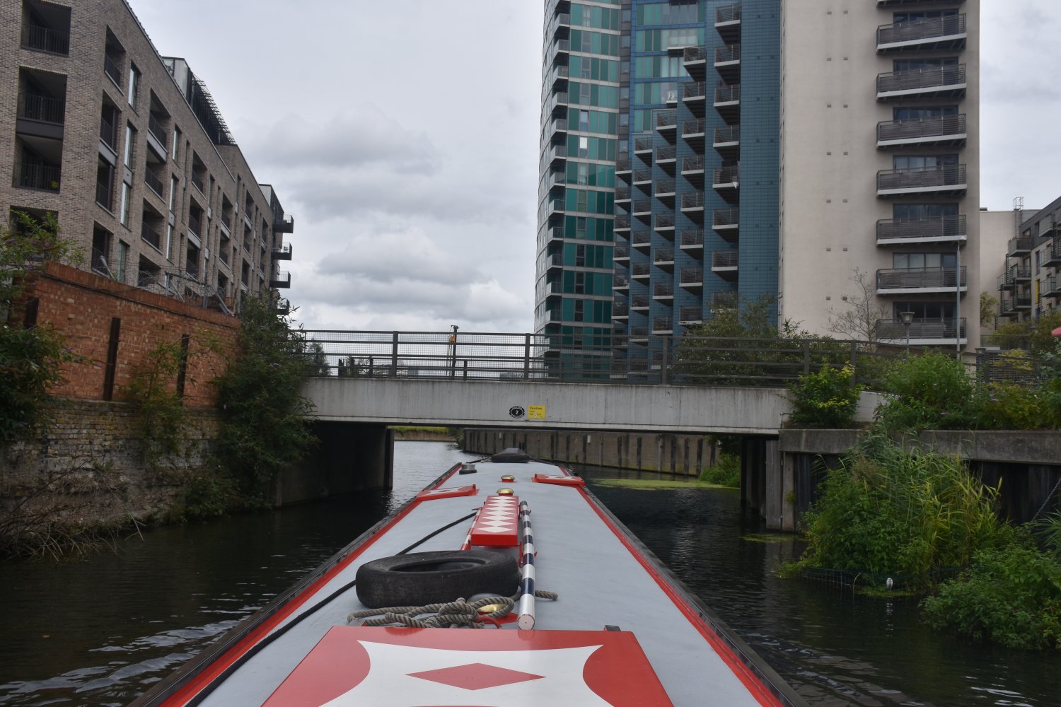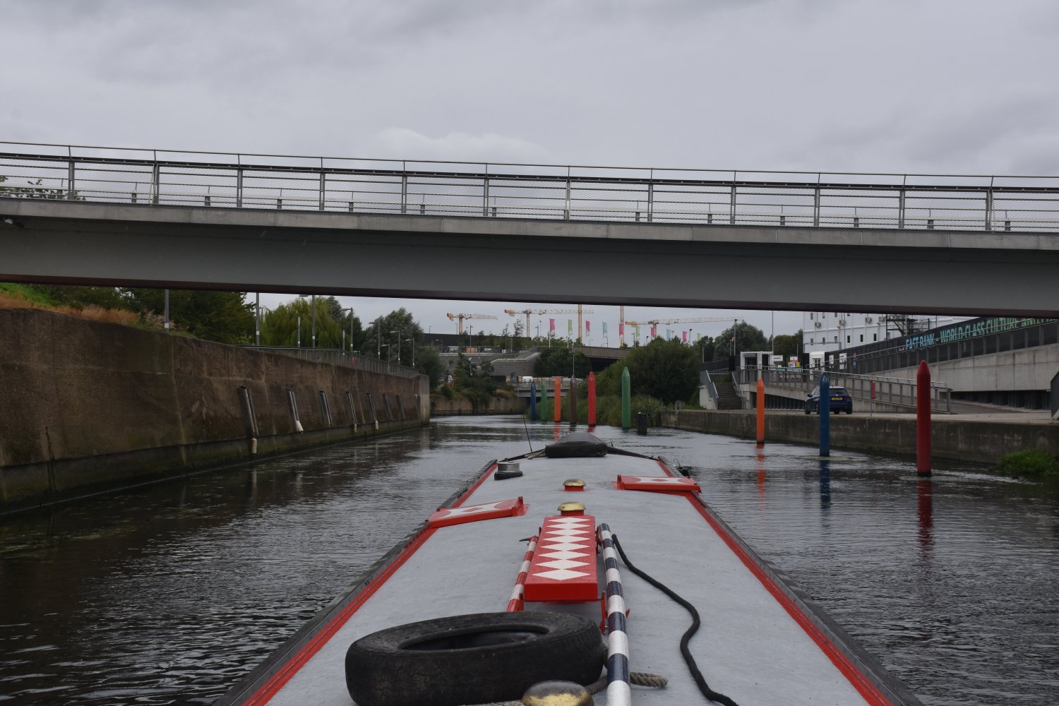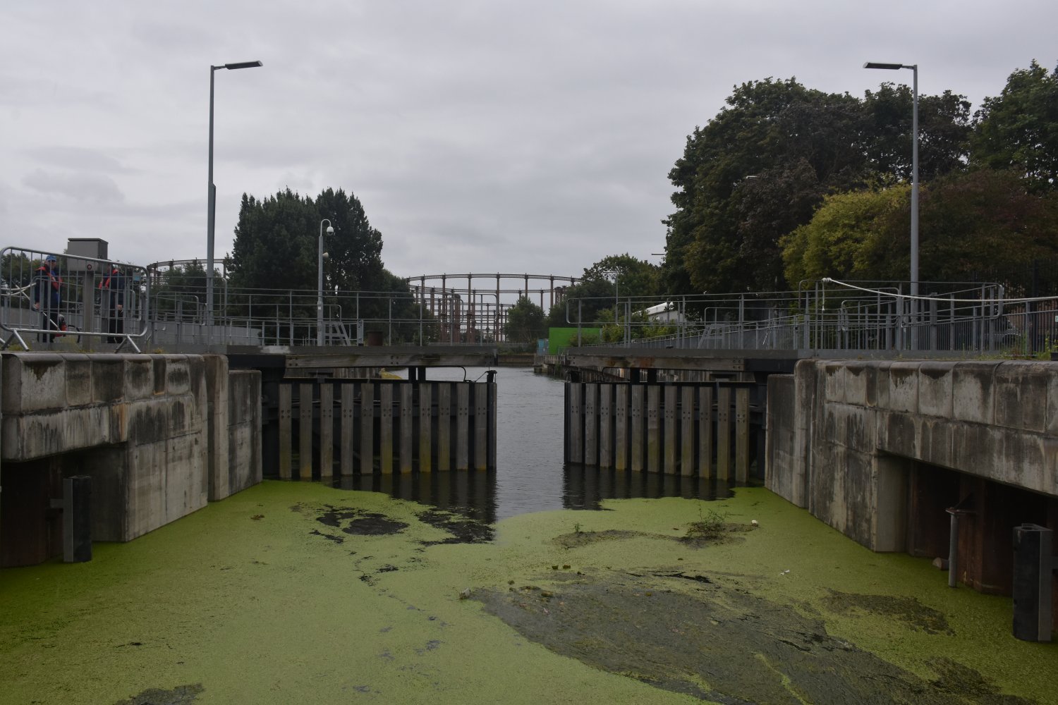 Exiting Bow Lock onto the tidal Bow Creek. Note the recent addition of outer