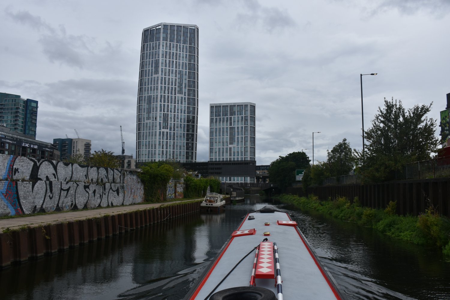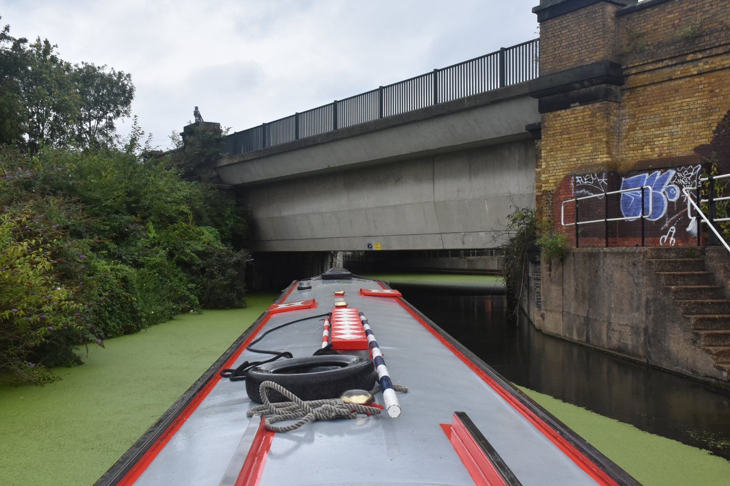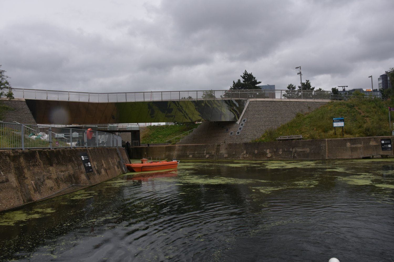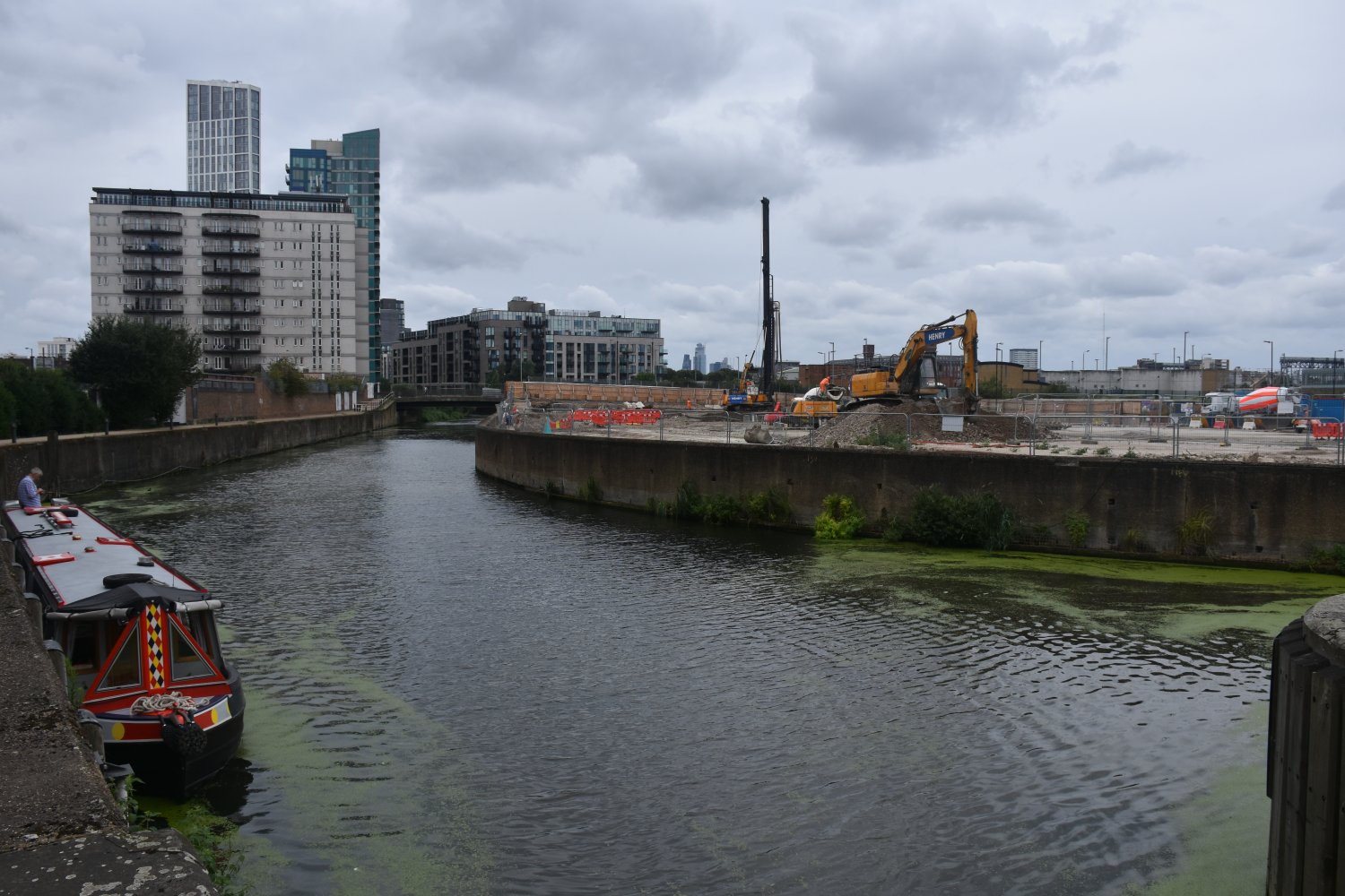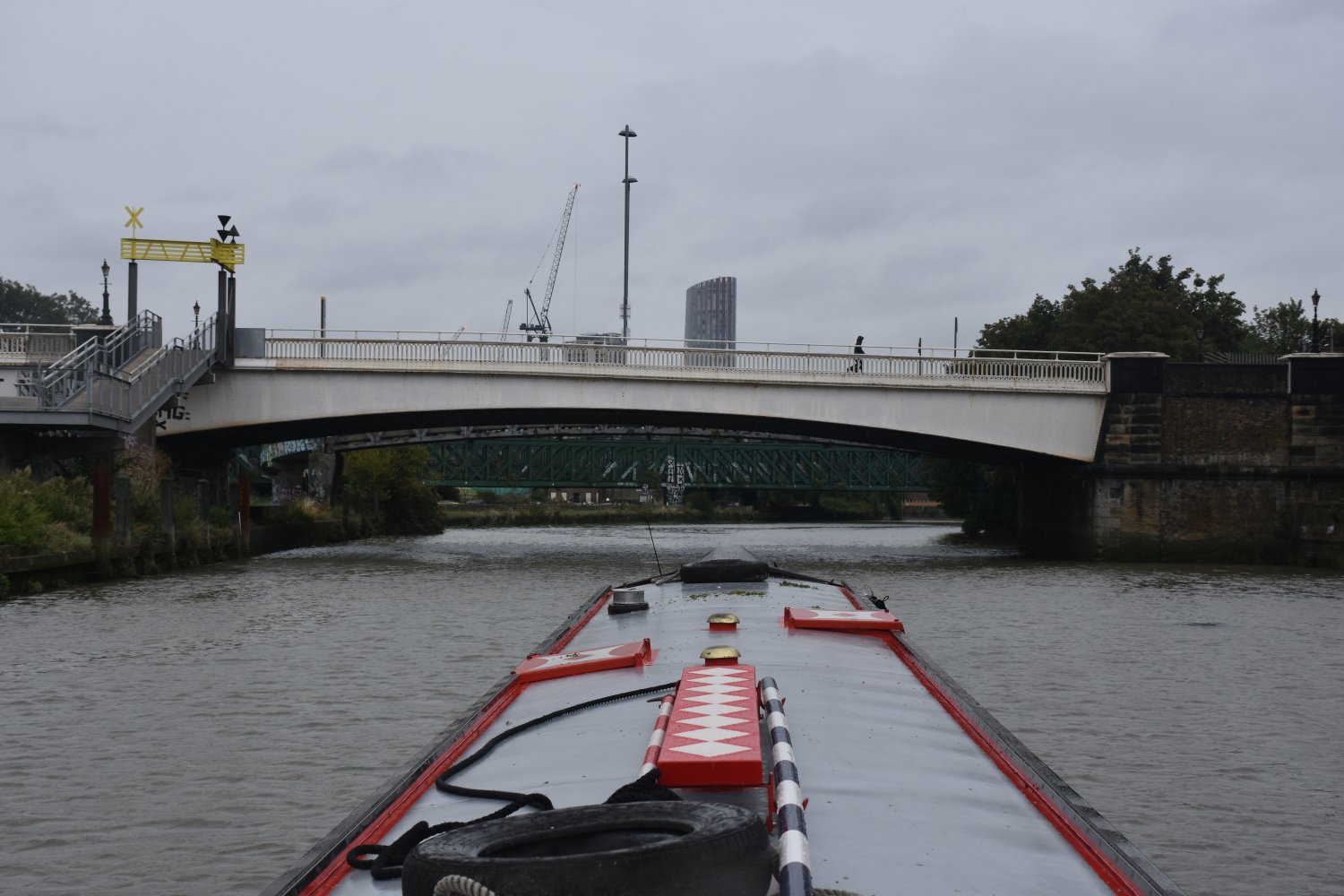 Exiting Bow Lock onto the tidal Bow Creek. Note the recent addition of outer