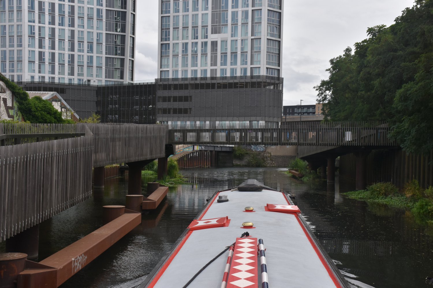 Crew Andrew Goodland (Captain Beeky), Trevor Burridge (Magical Trevor) and Dave Webb (West Ham Dave). The day started at London Canal Museum mooring, with NA + Captain Beeky. Magical Trevor and West Ham Dave were picked up near Actons Lock. The Bow Back Rivers + Bow Lock passages were eventually booked through The Canal and River Trust West India Dock Harbourmaster - Nick Evans, on 07468753184. Big thanks to Nick and the CaRT lads for organising the lockings...even though were were 20mins late for our first booking! The basic loop through Carpenters Road Lock and City Mills Lock can be booked on your Canal and River Trust customer login page, under "My bookings". Three Mills tidal lock cannot yet be booked this way. All these locks require 7 days notice to be operated (Bow Lock 24 Hour notice). We cannot understand how the booking chart was only showing one other boat booked for the whole of August!