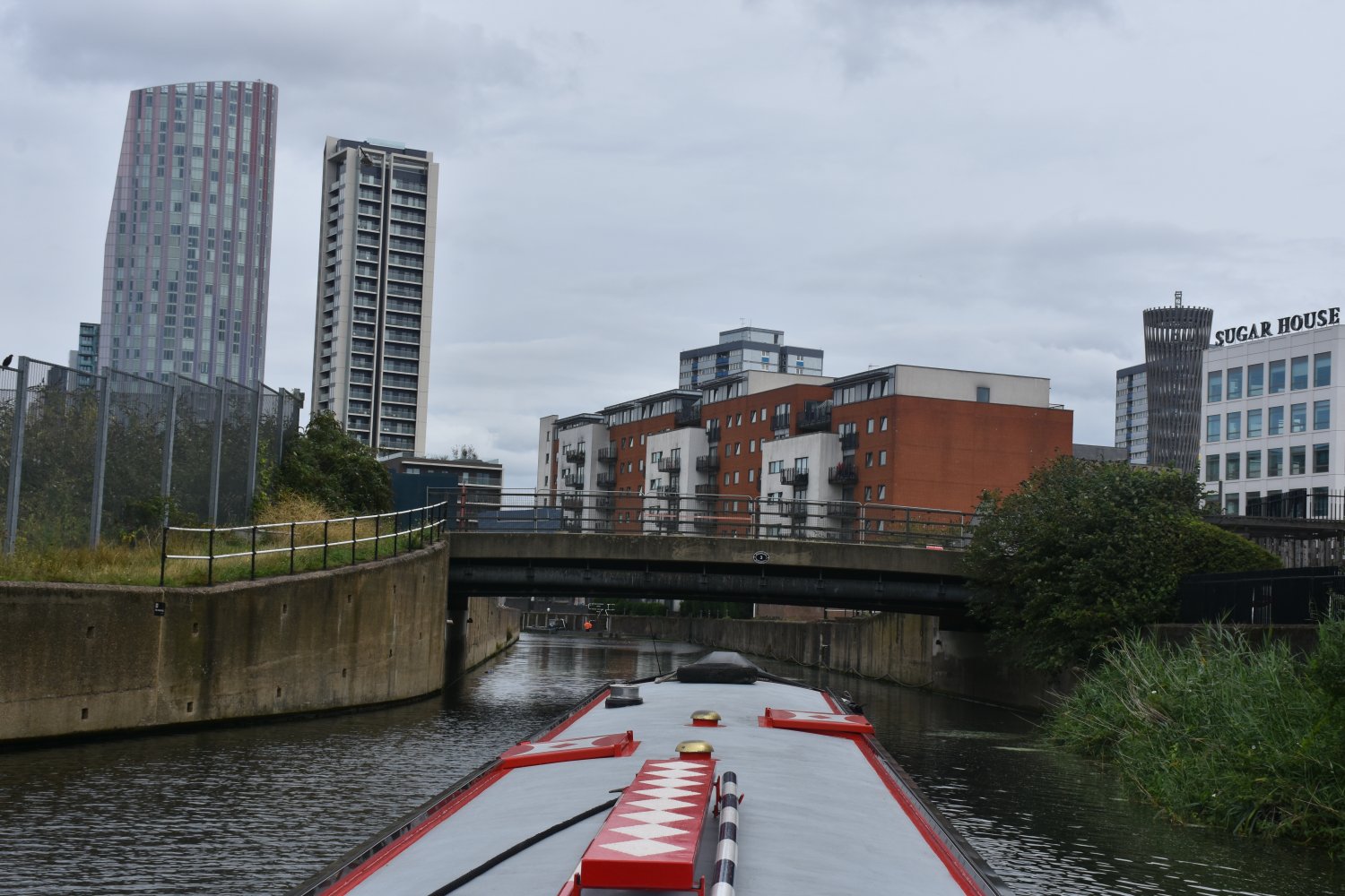 Bow Back Rivers. We have exited City Mill Lock, done a 180 degree turn and are