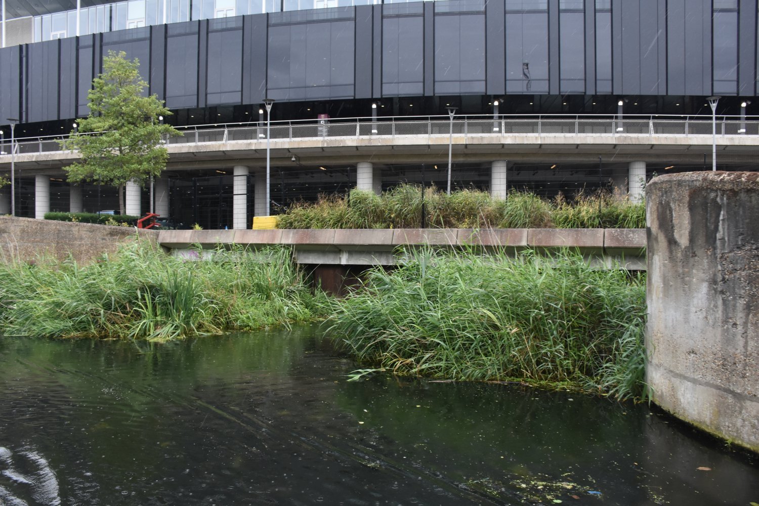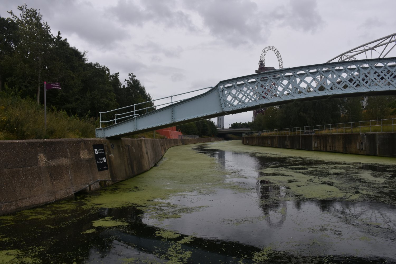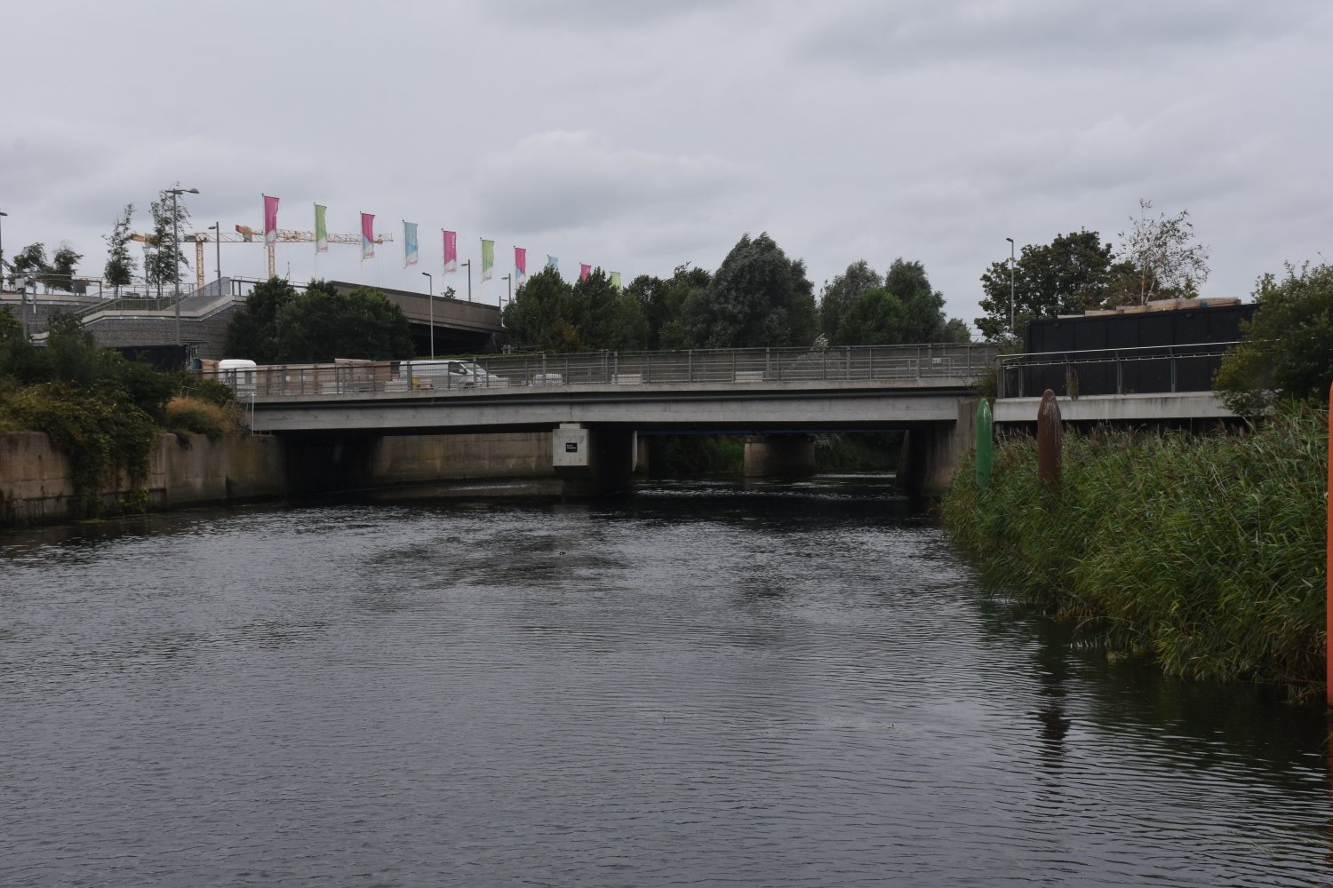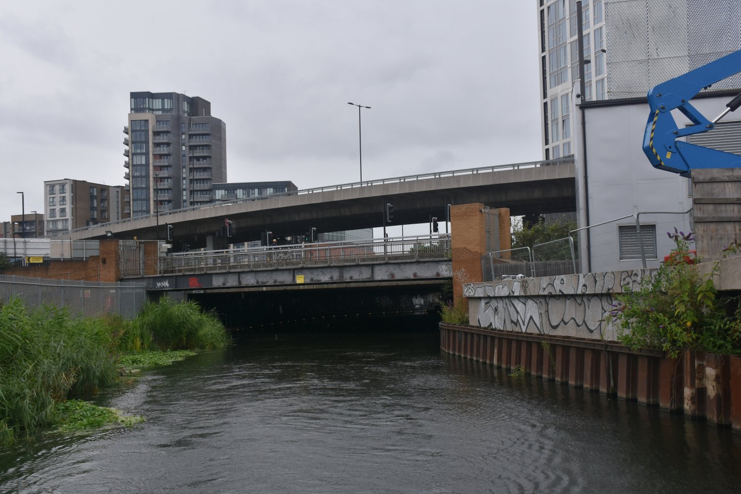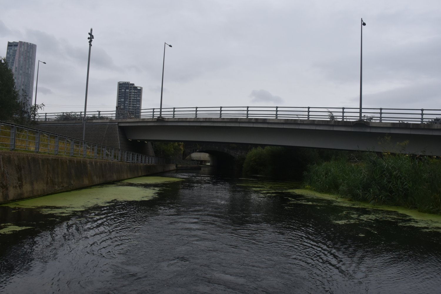 Abbey Creek / Channelsea River. Main channel. Northern Outfall Sewer bridge dead