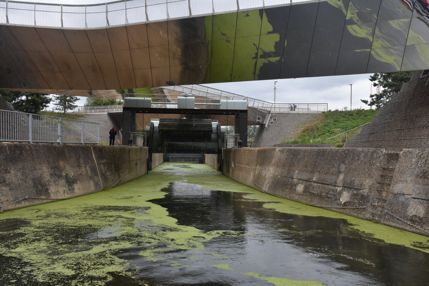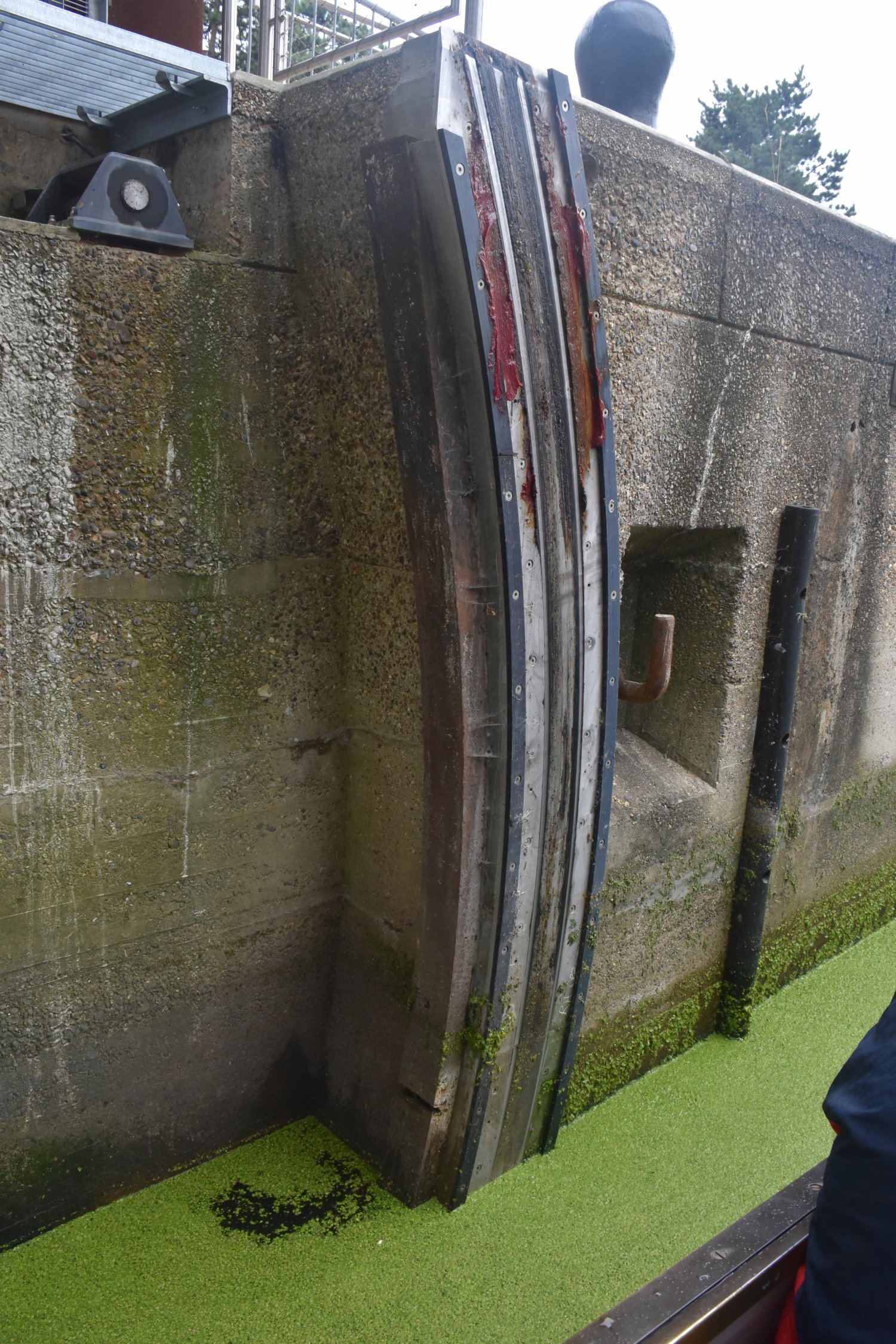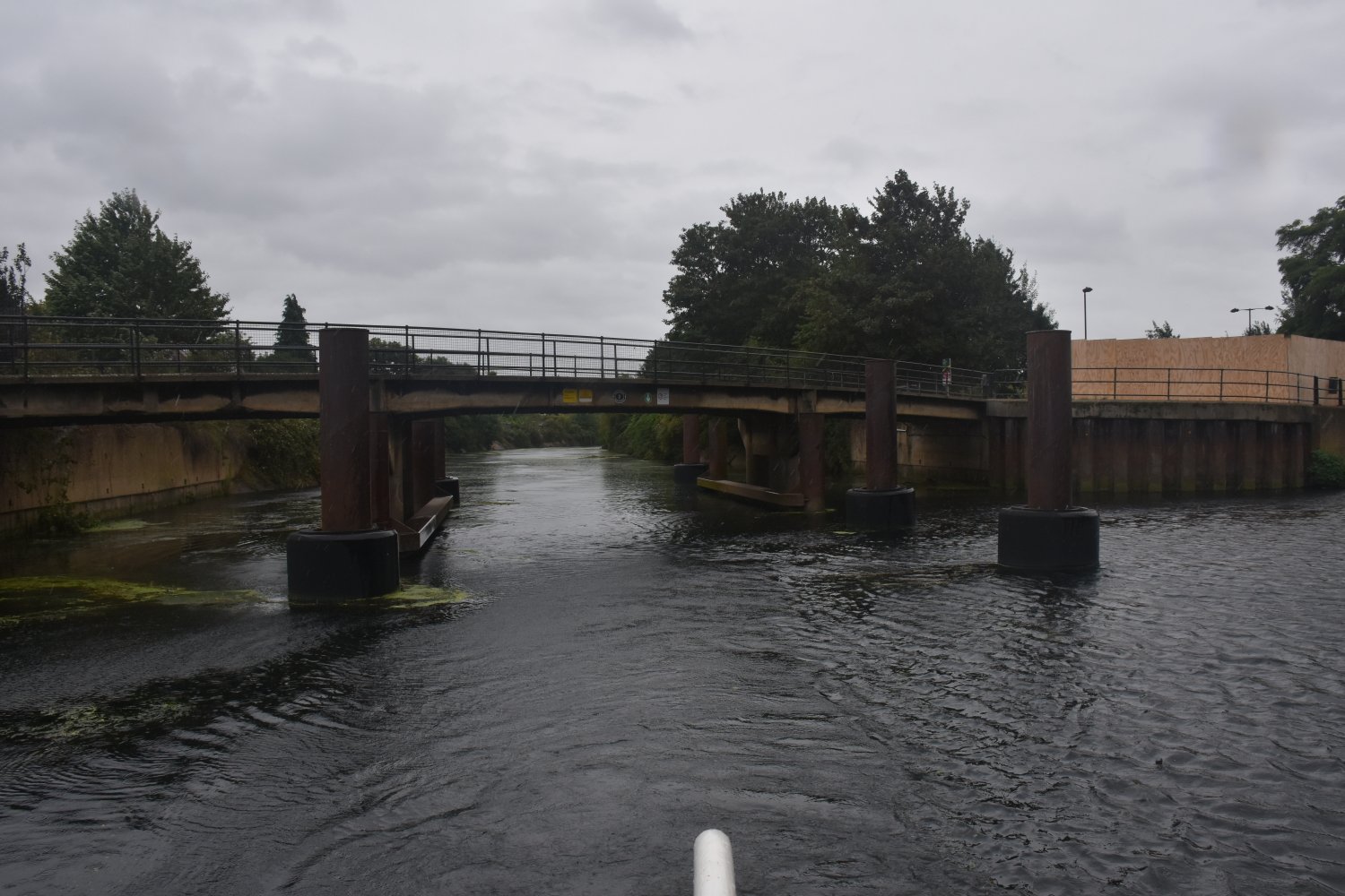 variable tidal weirs / gates. The CaRT lads have moved the weed barge to one