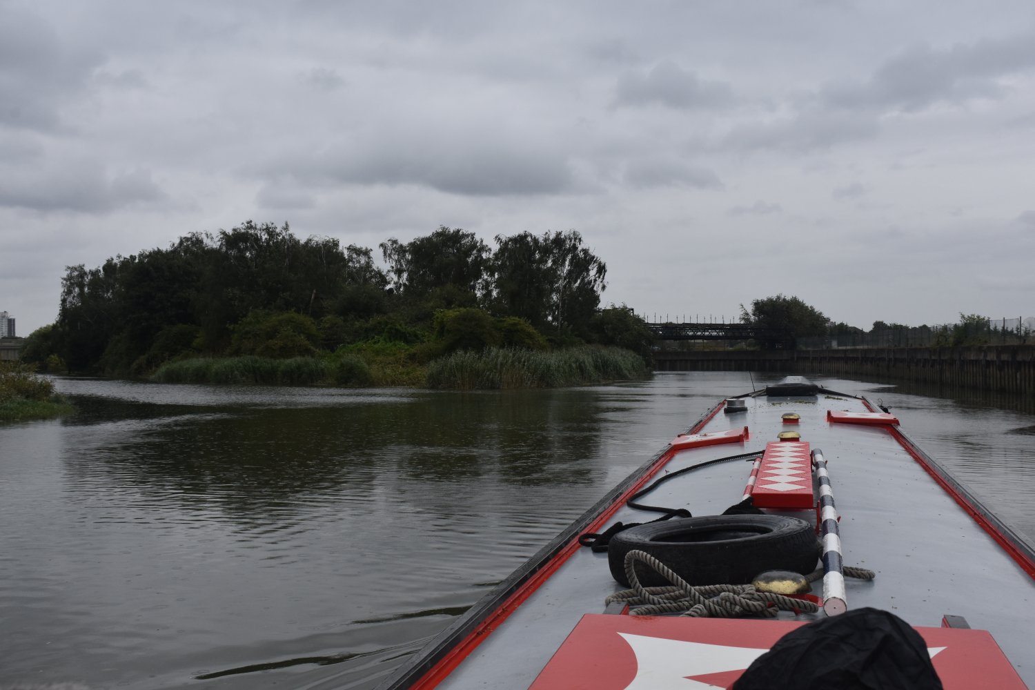 River Lee Navigation. Turning into St Thomas Creek / Bow Back Rivers.