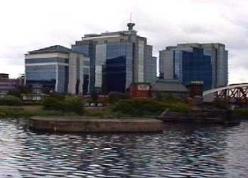 ![]() Coming up to Salford Quays - that were Manchester Docks. Upper Reaches of the M.S.C. / River Irwell. Manchester. |