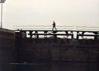 ![]() Looking back at Trafford Park Lift Bridge. M.S.C. |