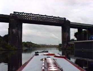 ![]() The River Mersey enters from the east, below Irlam Railway Viaduct. M.S.C. |
