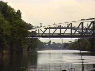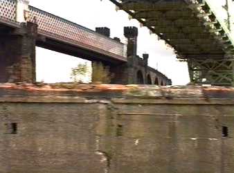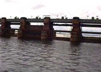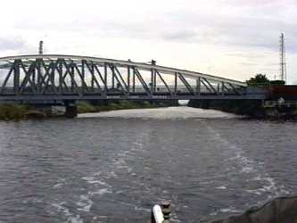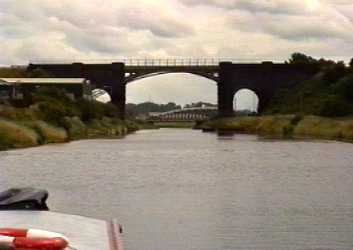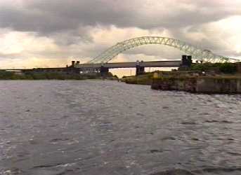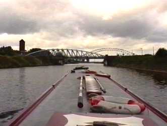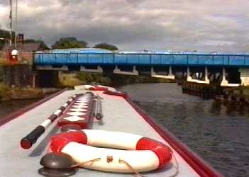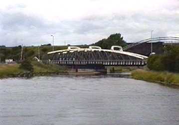 ![]() Approaching Old Quay Swing Bridge and the Runcorn Bridges. M.S.C. |