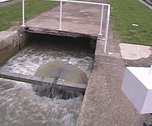 ![]() Radford Bottom Lock, first up from Leamington, Grand Union Canal. New permanent submersible back pumps installed in by-weirs, which were the old narrow locks. |