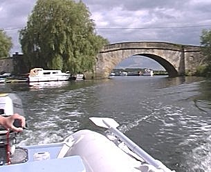 Wednesday 18th August saw another late start at 12.20pm. We stopped at 1.30pm on the little wharf at Kelmscot, as Ian wanted to visit the "Plough Inn". This certainly was a gem of a pub, completely unspoilt. At 3.00pm we were off again, arriving at the visitor moorings just below Ha'penny Bridge in Lechlade at 5.00pm. It was a reasonable evening so Neil got "Earnest's" ½ inflated tender of the roof and set it all up. Peter them spent the early evening ferrying Wendy, Nancy and john all over the place. That night we all had a take away Indian meal from the "Shugondha" Restaurant. The meal was good, but on the expensive side as we had over ordered. That night on "Straight Across" the adults stayed up quite late trying to drink the wine cellars from both boats dry.