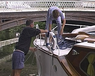 ![]() Osney Bridge, River Thames. Ian and Sharon getting "Straight Across" ready to squeeze under the bridge. |