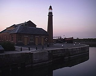 ![]() Ellesmere Port Lighthouse, we are looking from the entrance of Ellesmere Port onto the Ship Canal. Before the Ship Canal was built this would be the Mersey Estuary beyond here, hence the lighthouse. |
