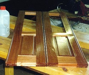 ![]() Andrew's superb saepele front doors in first coat of varnish. |