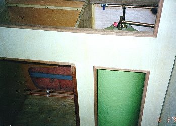 ![]() Rear doors and hatch not yet lined. Junk cupboard and cubby hole. |
