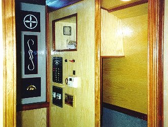 ![]() front of Saloon showing speaker boxes, shelves and radio box. |