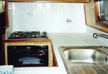 ![]() Galley tiling done, Vanette, hob and sink in. |