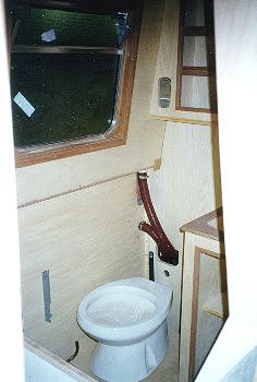 For the intensity of a T.N.C. non stop cruise the water tank has found to be of a sufficient capacity(150 galls.), especially as the canal water toilet flush system has been used all the time. The water gauge has proved a boon (on "Beatty" you could easily lift the water tank lid to physically see the water level ) and has now been calibrated. The Jabsco DS14 toilet has been totally odourless and reliable (much to Ray's amazement!) and as it is manually controlled in the flush and water refill department, very economical on water (this we tested out while the boat was at Braunston and fresh water flush was used.) It has been heard through the "Towpath telegraph" that other makes of electric macerated toilets that only use a factory pre programmed flush cycle waste a lot of water. The low water consumption do not bother us, as the canal water flush has been used ALL the time. The raw water filters have only had to be cleaned a few times. The Lee Sanitation / Jabsco 240v self pump-out system has proved very effective, normally pumping out a full tank quicker than ever occurred with a boatyard pump-out on "Beatty". Obviously this has depended on how much higher the sanitary station was in relation to the boat. We did have a failure on the pump-out pump once due to, or causing, the pump start capacitor to fail. Neil replaced this with a more heavy duty one and fitted a thermal cut-out. This was put down to either, not full power being available from the Electrolux Travelpower due to not enough engine revs, or the "Lumpy dregs!" from the bottom of the tank being left in the pump-out pump and drying out. For this reason the tank is now always well flushed out, some thing we can now do, as we are in control.