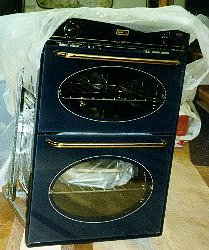 ![]() Blue Vanette oven with retrofitted brass handles. |