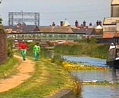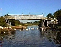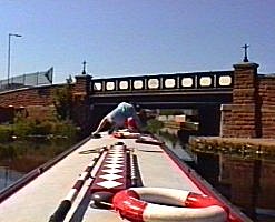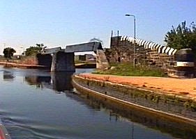 ![]() Hancock's Swing Bridge No9 and pipe bridge, Aintree. We have just picked up the boat behind. |