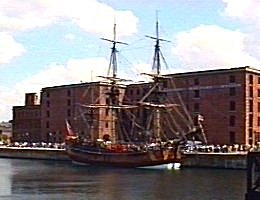 ![]() HMS Bark Endeavour outside Merseyside Maritime Museum in Albert Dock. It was on a summer round Britain trip. |