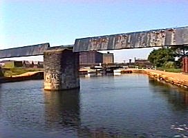 ![]() Remains of tow path over bridge, now just pipe bridge, entrance to Stanley Dock Branch. |
