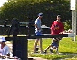 ![]() Alan, Adam, Anna and Wendy try out Appley Lock No91. Leeds and Liverpool Canal. |