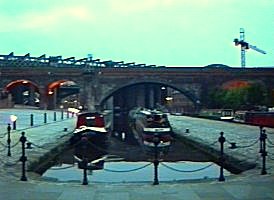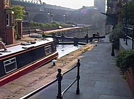 ![]() Rochdale Nine Locks. The gay centre of Manchester. The contentious low footbridge and pub barge just above Princess Street Lock No87. |