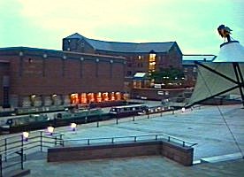 ![]() Castlefields at night. Looking back at the Kenworthy Arm from the arena. Swimming Pool and Hotel in distance. |