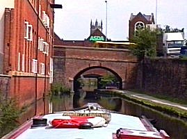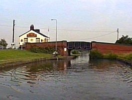 ![]() The still keeper controlled Plank Lane lift Bridge No8. This is the license checking point between B.W. and the Bridge water Canal. |
