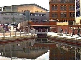 ![]() Castlefields. Our early sunny morning departure. Building work to the right is a new Y.M.C.A. |