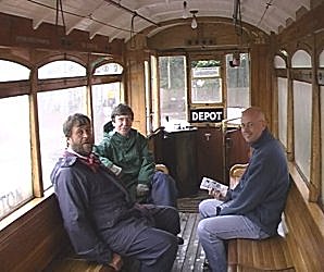 ![]() Taking half a day off at the Black Country Museum. Tram ride in the rain. Ian B, Peter W and Colin. |