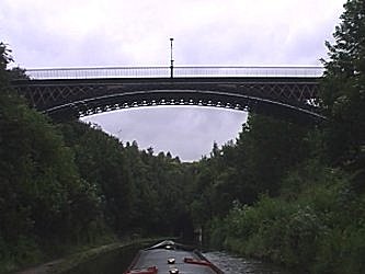 ![]() The Old Main Line crosses over here on the Stewart Aqueduct. Note boat passing boat on aqueduct. New Main Line (Birmingham Level.) |