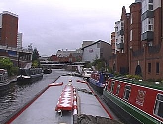 ![]() Looking back at the Worcester Bar gauging point and Gas Street Basin. The "re-generation" of this vista is now complete! Birmingham, Worcester and Birmingham Canal. |