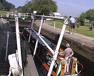 ![]() Ian S and Andrew G are having paddle raising races! Pershore Lock. Lower Avon (Warwickshire River Avon). |