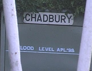 ![]() The 1998 flood level at Chadbury Lock. Lower Avon (Warwickshire River Avon). |