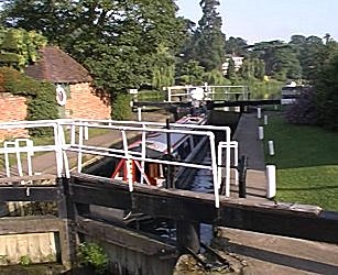 ![]() Leaving Pershore Lock. This is a very secure overnight mooring, as due to the security fences round the lock, you can not get out! Lower Avon (Warwickshire River Avon). |