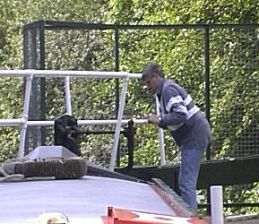 ![]() Andrew G and Ian S are having paddle raising races! Pershore Lock. Lower Avon (Warwickshire River Avon). |