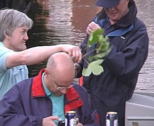 with water and wash off BW Braunston strimmings. Dave Heamon in Raven, also