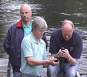 ![]() Dan starts to "lay in" to Colin. The bickering was to last all week! After sorting out everybody's Mobile Phone, Colin now turns to Linda's camera. |