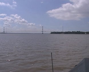 ![]() Although we have not yet got to the Shoots, this was the "bumpiest" bit. Only a few splashes onto the cratch windows! Severn Second Crossing. Severn Estuary. |