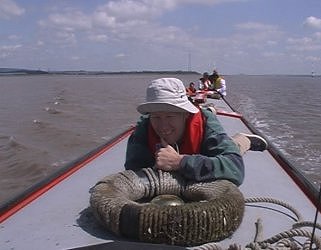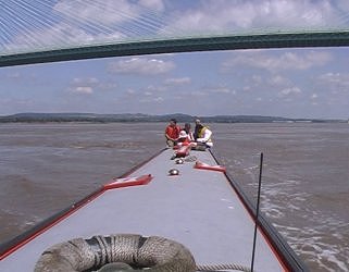 ![]() Leaving the Severn Suspension Bridge astern. Ian S has a lay down. Severn Estuary. |