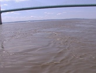 ![]() Looking back up at the River Wye and its M4 bridge. Severn Estuary. |