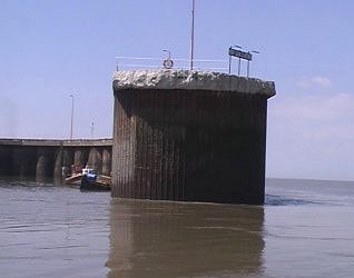 ![]() Royal Portbury Docks breakwater. There is an open section connecting the breakwater to land. The Dock control tower is apparently empty of staff. Severn Estuary. |