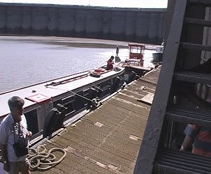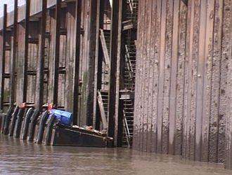 ![]() Royal Portbury Docks breakwater. The vacant dredger pontoon is to be our drop off point for the pilot AND our stopping point until the next flood! Severn Estuary. |