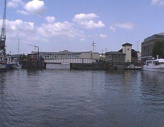 ![]() Looking back at the old stop lock. We have just turned sharp left (Right in this rear view). Bristol Floating Harbour. |