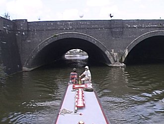![]() Going through the old stop lock into the feeder canal. Feeder canal to the left, Totterdown Basin to the right. Bristol Floating Harbour. |
