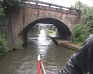 ![]() Leaving Woodham Junction and railway bridge. River Wey Navigation. |