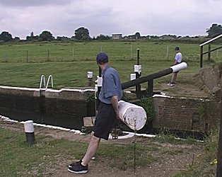 ![]() Keith has a somewhat well behaved dog! Unstead Lock. River Wey and Godalming Navigations. |