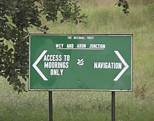 ![]() The sign at the end of Stonebridge Wharf. Maybe one day we will turn left. River Wey and Godalming Navigations. |