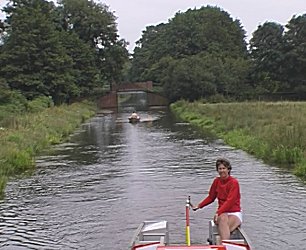 ![]() Unstead Bridge. We have picked up a fast moving rowing boat! River Wey and Godalming Navigations. |