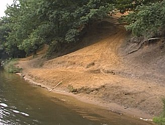 The very Sandy Corner, Large out crop of Lower Greensand. River Wey and Godalming Navigations. |
